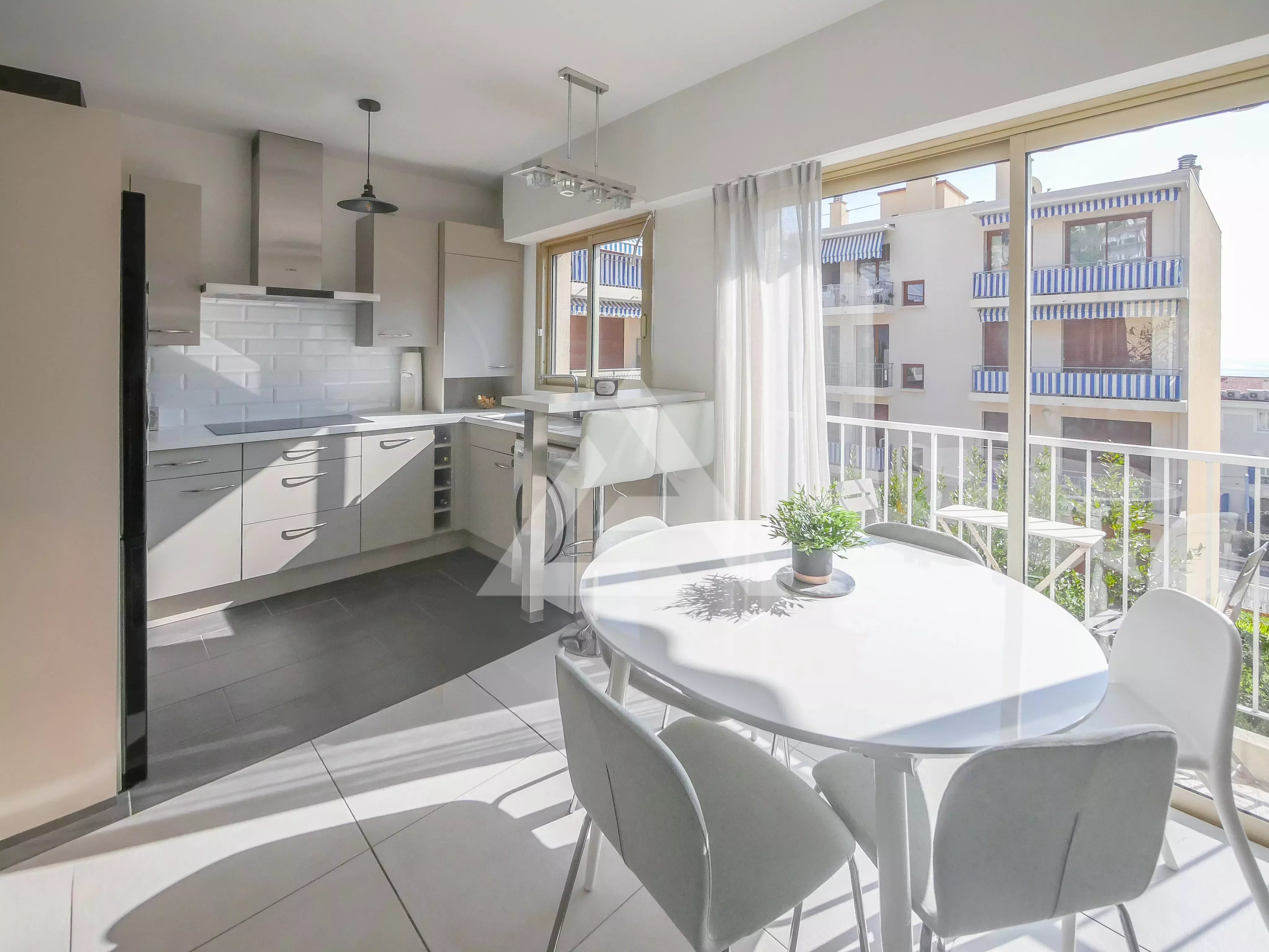 The flat comprises a bright living room opening onto two pleasant balconies, a modern, fully equipped open-plan kitchen, two comfortable bedrooms, an elegant bathroom and a separate toilet.