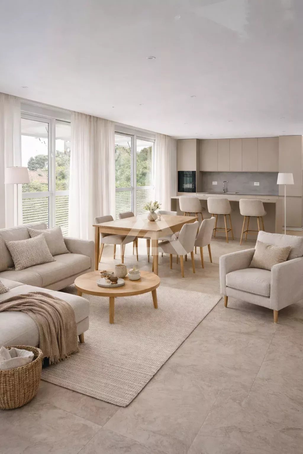 Cette propriété moderne offre de beaux volumes répartis sur trois niveaux.