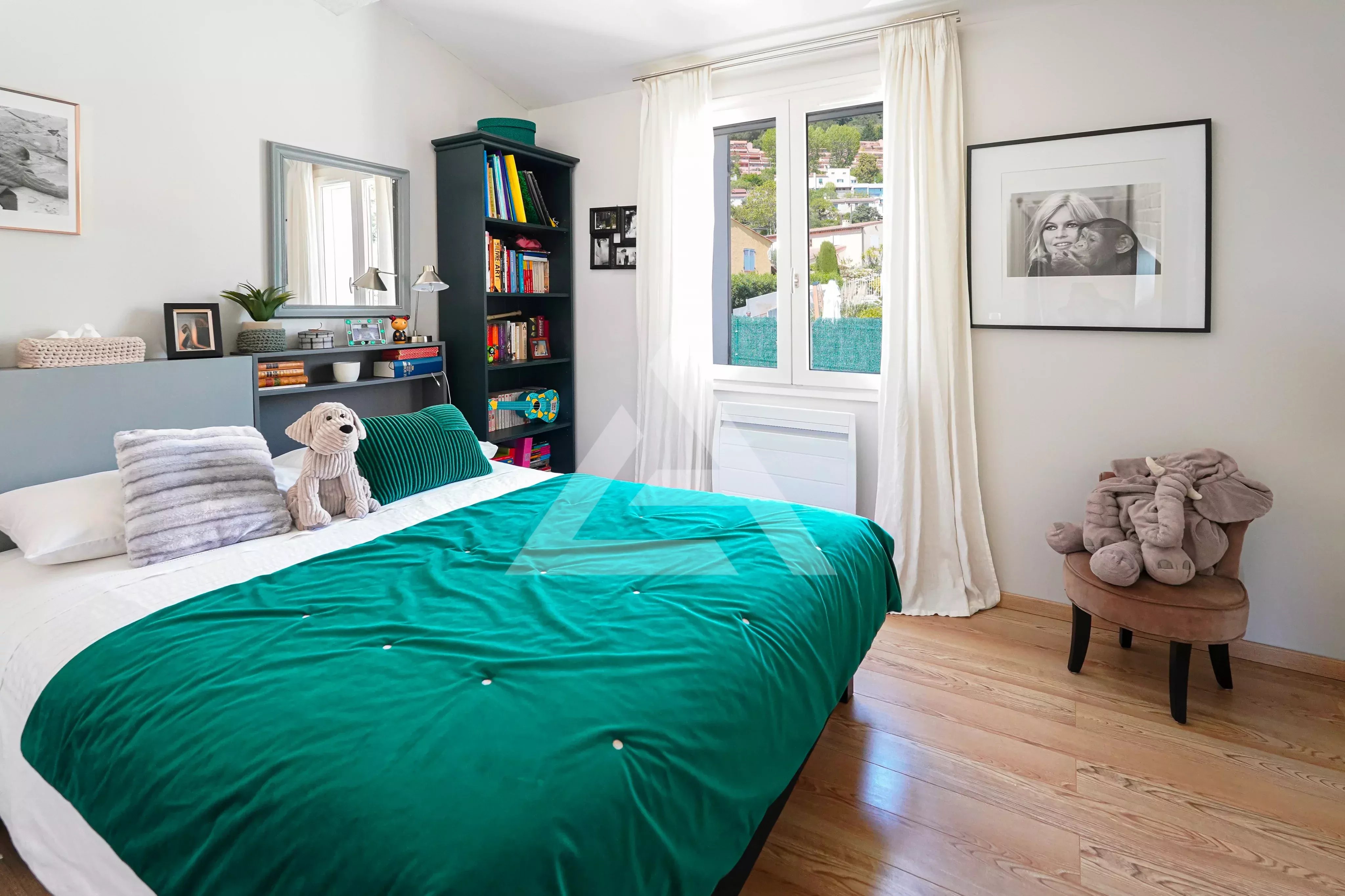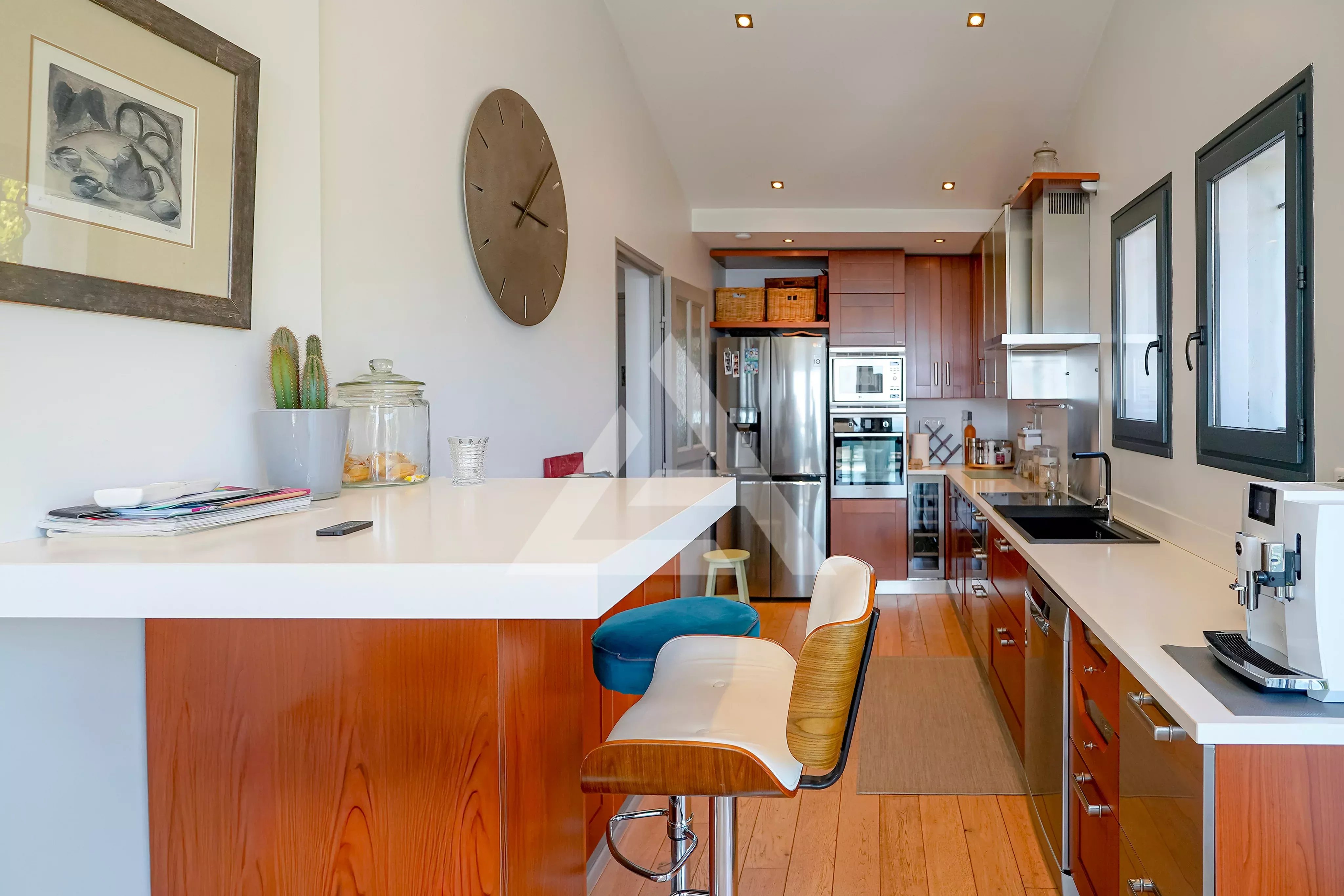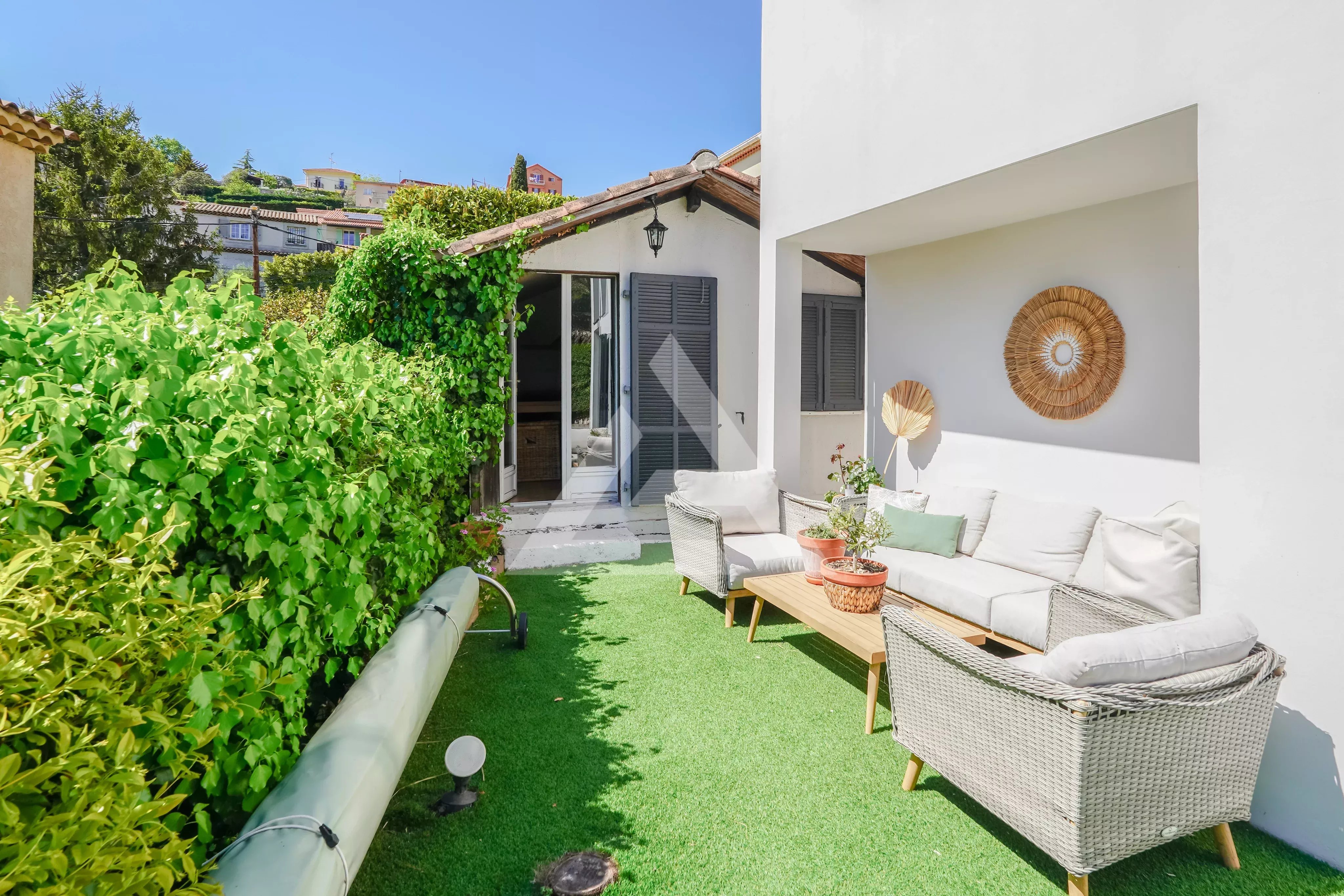 Située sur la commune de La Turbie dans un secteur calme et à 10 minutes à pieds du centre ville, cette villa élevée sur trois niveaux de 206 m² habitables bénéficie d'une vue mer.