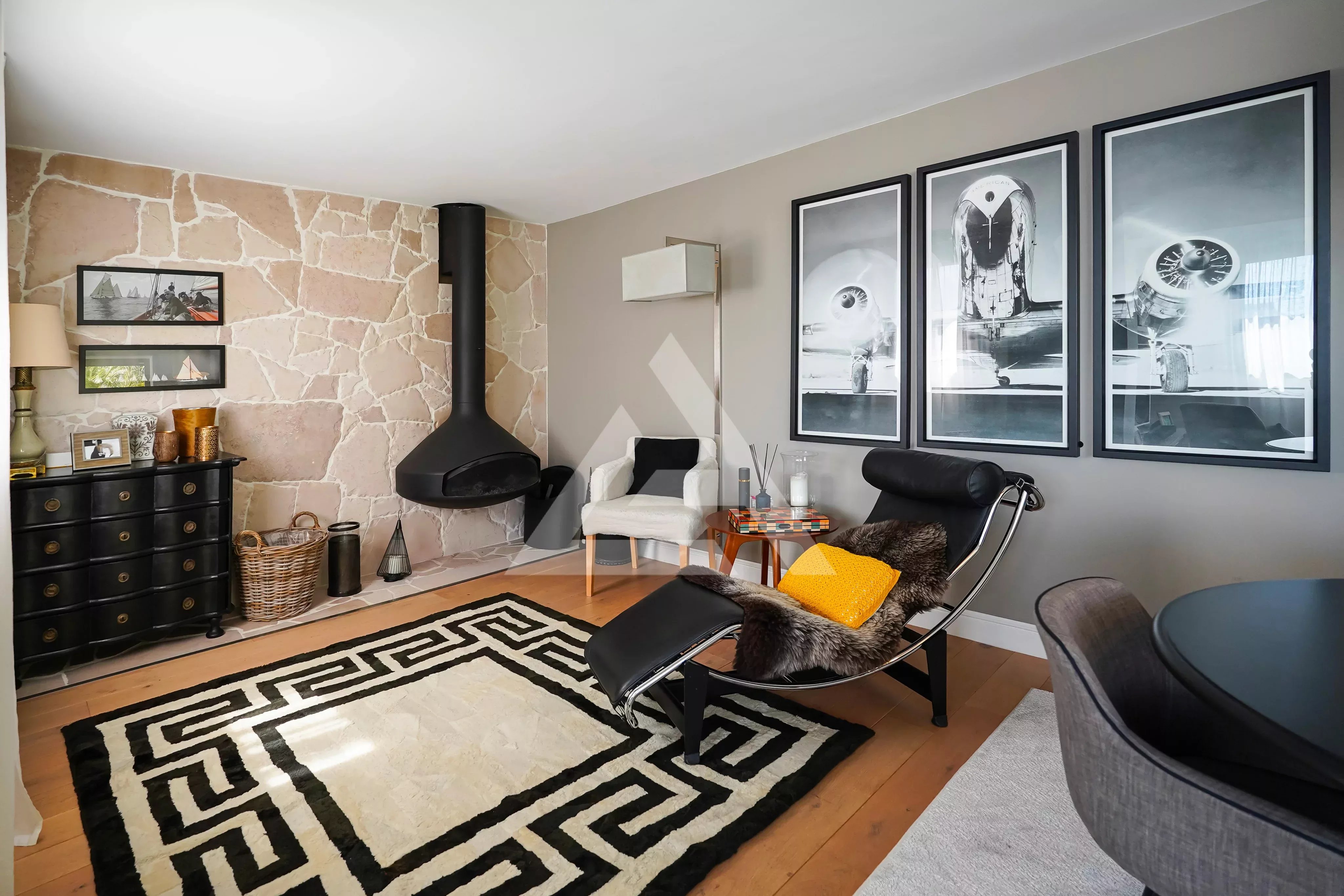 - Au rez-de-chaussée : une entrée, un séjour, une cuisine équipée, une chambre avec salle de douche et un toilette invité ;