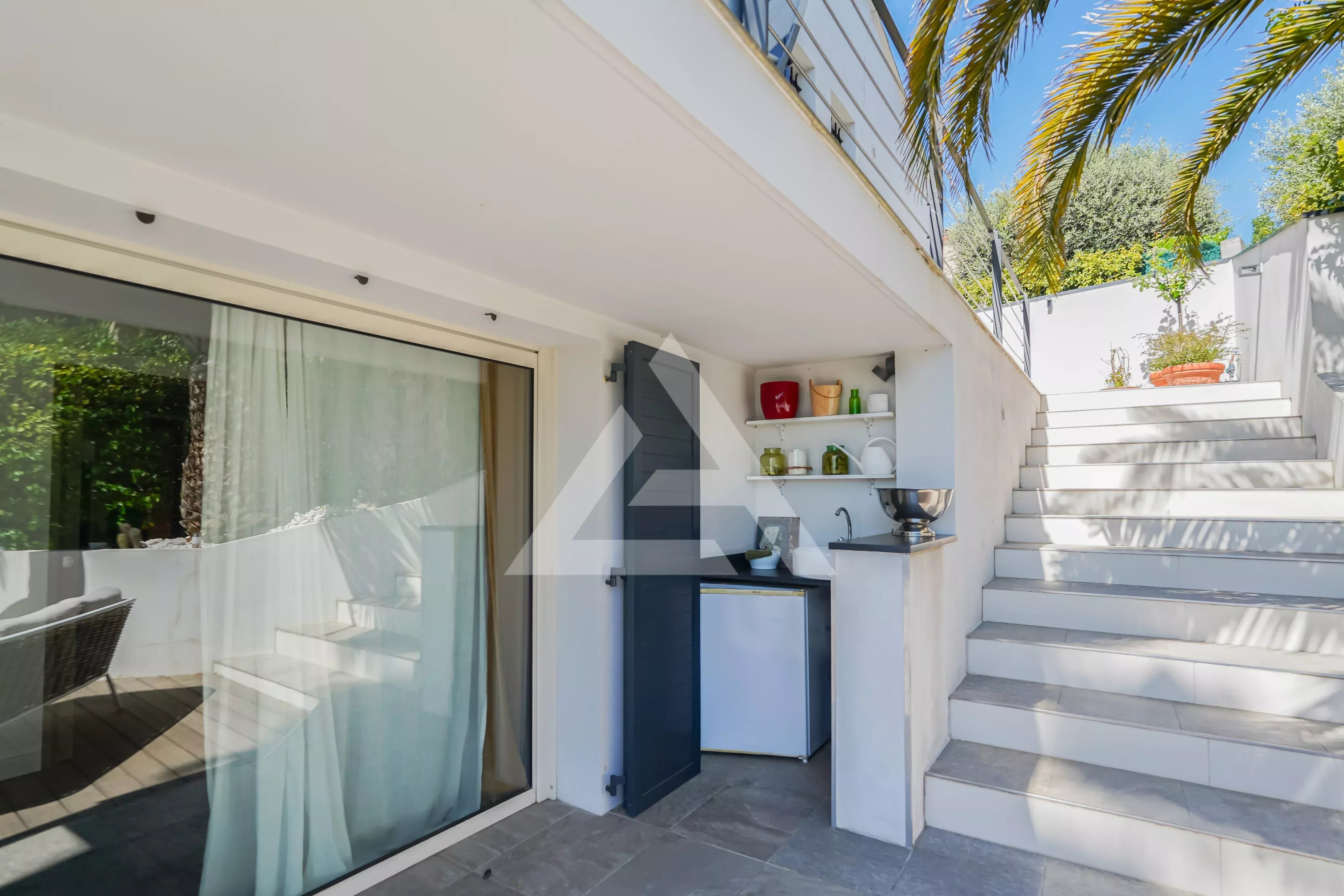 La villa dispose d'un extérieur bien aménagé, d'une piscine et d'un studio indépendant (chambre avec salle de douche).