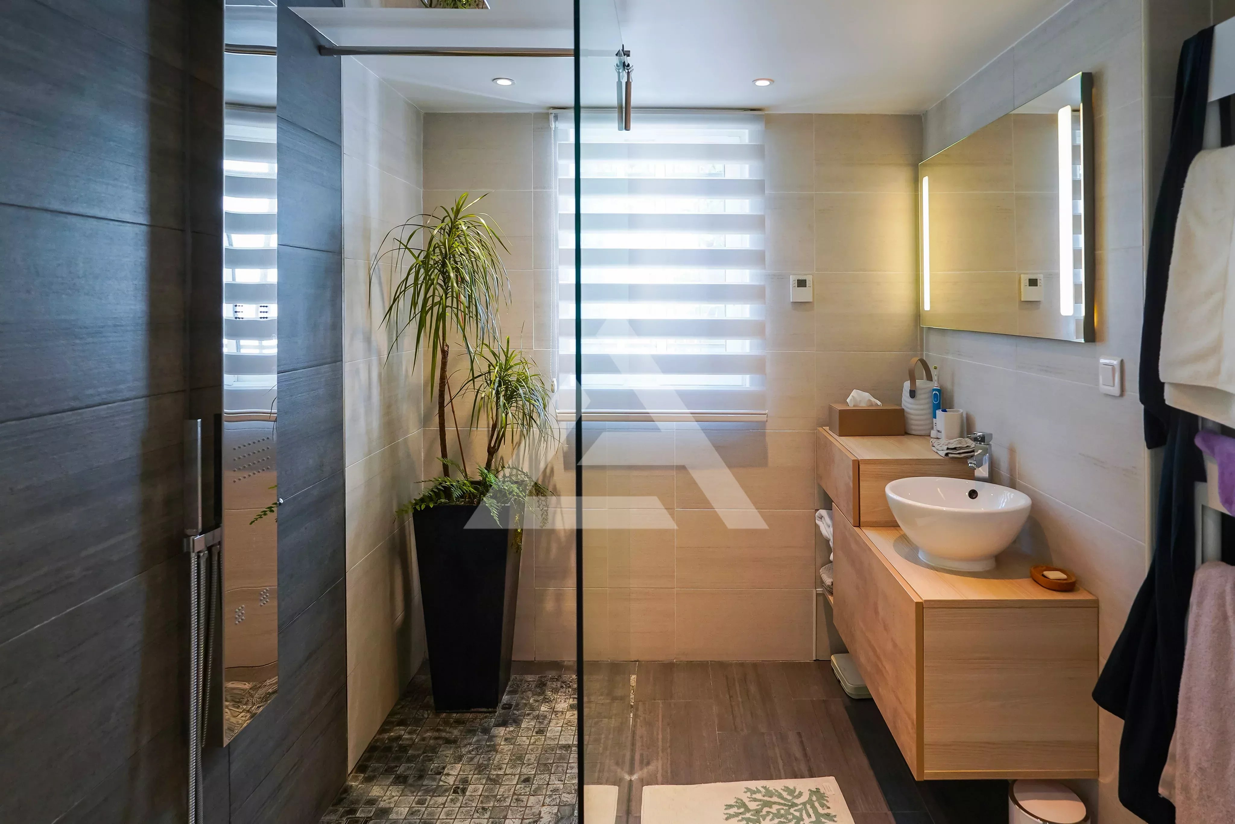 - Au rez-de-jardin : une chambre master avec un grand dressing, une salle de bain et une salle de douche.